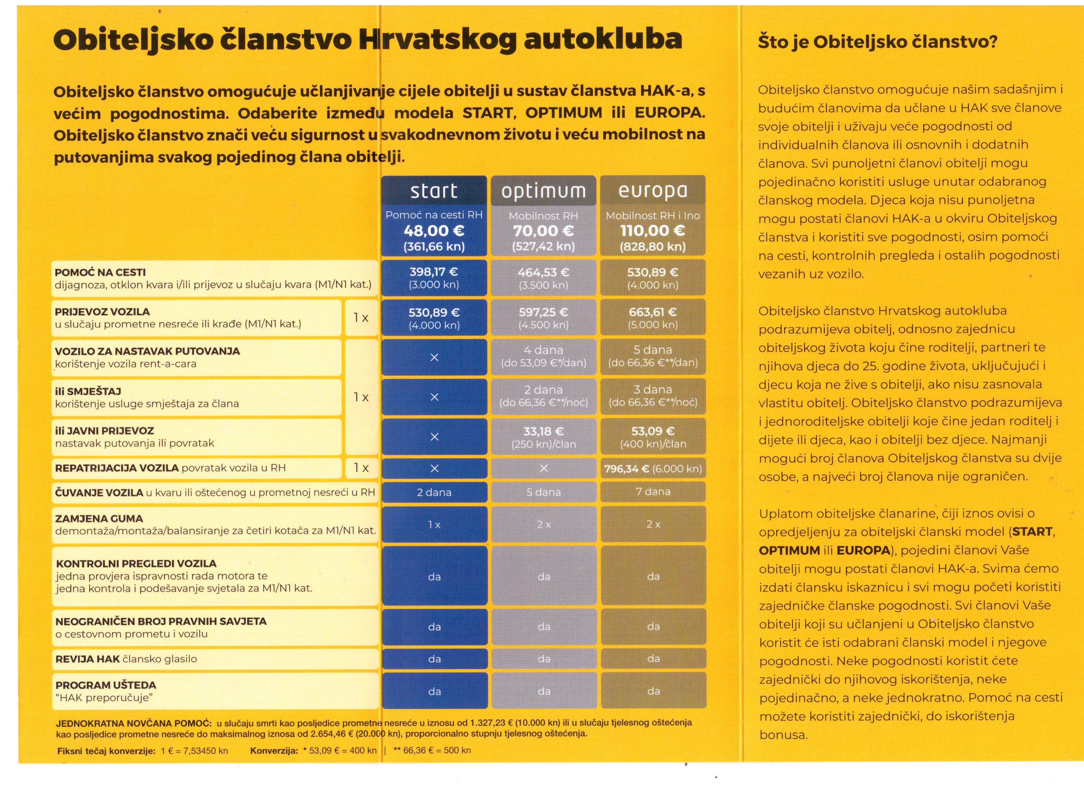U obiteljskom članstvu sudjeluju nositelj članstva, bračni ili izvanbračni drug te djeca do 25. godina starosti, koji zajednički koriste ovdje navedene pogodnosti.